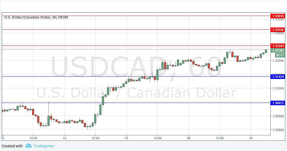 I wrote yesterday that it would be a surprise if we did not see still higher prices over the next few days. The resistance at 1.3250 may hold the price down, at least for a while, as that is confluent with a key psychological level. I had a bullish bias today below 1.3250. This worked out OK as the price has continued to rise broadly, not by a lot, but by something. Commodity currencies are generally very weak right now, with the Canadian and Australian Dollars hit hard by the talk of new tariffs. The Australian Dollar is falling more rapidly than the Canadian Dollar.