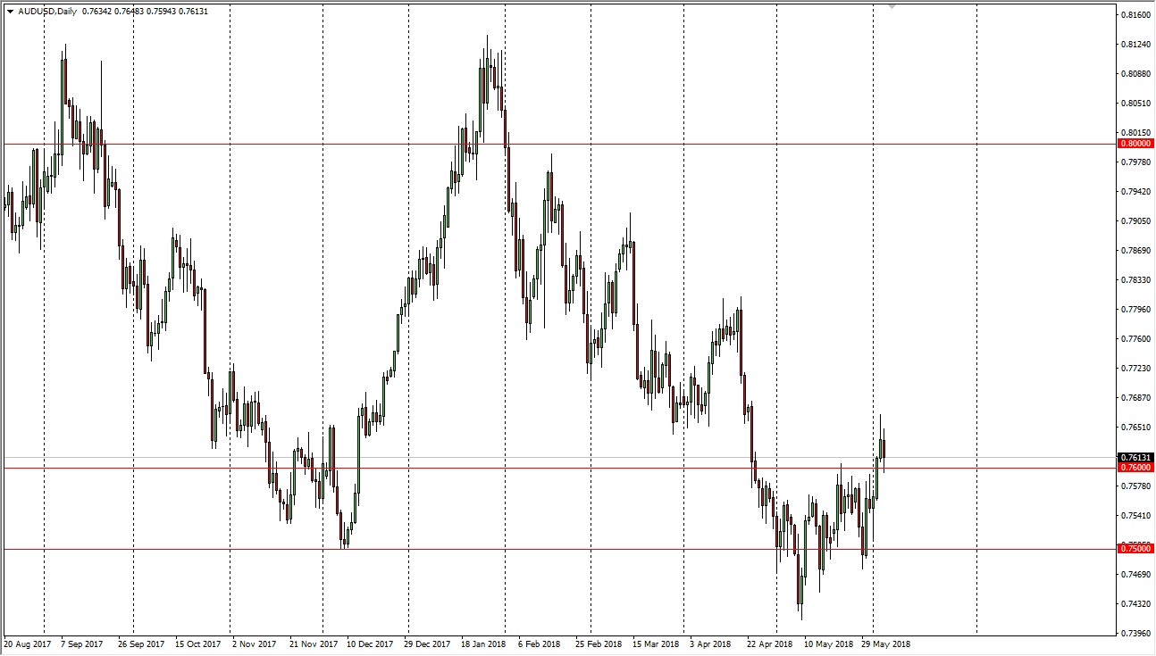 The Australian dollar has initially tried to rally during the session, but then turned around to test the 0.76 level for support. I think that the market will ultimately find reasons to buy this market, mainly because we have seen so many hammers on the weekly chart, suggesting that the 0.75 level is in fact going to be a major support level. I think that it’s only a matter time before we go looking towards the 0.78 level, but it is probably going to be very choppy along the way. If you are cautious and patient enough, you should be able to take advantage of this move, assuming that we continue to get more of a “risk on” attitude. Otherwise, we could revisit the 0.75 level where there is an extraordinarily large amount of buying pressure. If we were to break down to a fresh, new low I think this market would unravel.