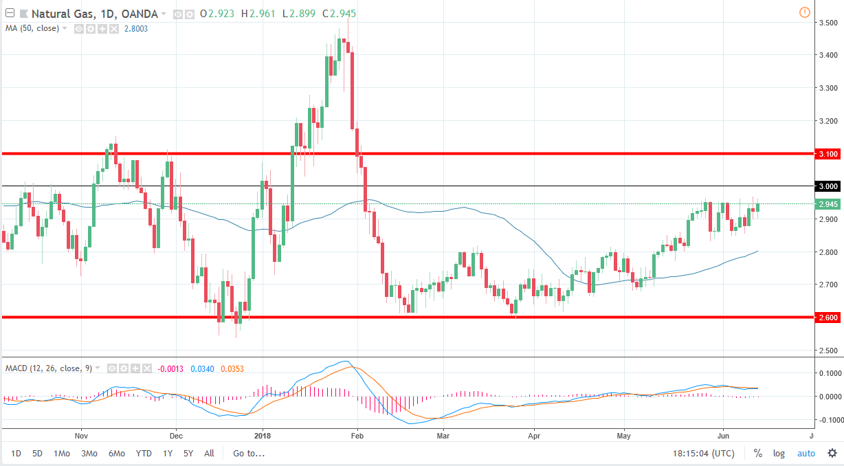 The natural gas markets initially fell during the trading session on Wednesday, reaching down to the $2.90 level. However, we turned around to break towards a $2.96 level again, an area that has been resistance as of late. If we can break above the $2.96 level, then we will probably go looking towards the $3.00 level. That’s an area that is psychologically important, but I think there is even more structural resistance at the $3.10 level. If we do turnaround from here, it’s likely that the market will break down to the $2.90 level, and then possibly the $2.85 level. It’s difficult to discern anything beyond a short-term trade though, so keep that in mind. I would pay attention to the hourly chart, using these levels as parameters from which to trade. Right now, I suspect that we will see a lot of back-and-forth action with those resistance barriers above.