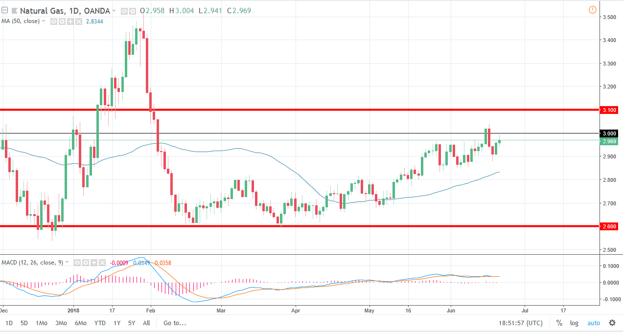 Natural gas markets have been very noisy as of late, and had a strong move happened during the day on Thursday. However, the $3.00 level has offered enough resistance to turn things around of form a shooting star. The shooting star of course is a very negative candle stick, and it’s a technical selling signal if we break down below the bottom of it. At that point, the market could very well drive down towards the $2.85 level. However, if we break out above the $3.00 level, then we could continue to go higher, and perhaps test the $3.10 level after that. There is a lot of noise between here and there, so I think it’s very unlikely that it will be an easy move. Ultimately, this is a market that I do think is getting close to the top of the overall consolidation area, it’s likely that eventually the sellers will return.
