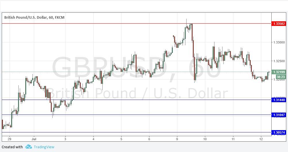 I wrote yesterday that direction looked very uncertain due to political instability in the U.K. as well as the fact that the price was in the middle of a very wide zone between any key support and resistance. This is still true, but it looks as though there is minor support confluent at the round number of 1.3200 where we have seen some buying, so over the very short term the price could move up from here. However, it still looks generally very uncertain, so this currency pair is probably best avoided for the time being, with better opportunities likely to be found in the EUR/USD or USD/JPY currency pairs today.