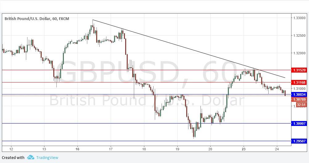 I wrote yesterday that the bulls would probably maintain the upper hand, but first the price needed to break convincingly above the resistance level at 1.3145. I was wrong in my expectation but correct in seeing that as the pivotal level of the day. The price chart below shows a medium-term bearish trend, and there is a long-term bearish trend as well, suggesting that taking a short bias is generally going to be the more profitable approach here. The bearish trend line reinforces this. At the time of writing, it looks as if the price may be breaking below the key support level at 1.3083. If it is still below there and looking bearish at 9am London time, I would take a bearish bias today, as there is plenty of room for the price to fall below that area.