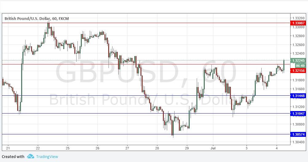 I wrote yesterday that there were signs that the price would move up, and although I didn’t call it, this is what happened. The Pound now looks, at the time of writing, more bullish than the Euro, with a break above the resistance level at 1.3216 happening even before the London open, which is a bullish sign. I think we will see higher prices today unless the British data release is very poor, but the action will almost certainly slow down after the first few hours of the London session, due to the U.S. holiday today. It looks as if the price will make another test of the 1.3300 area later this week.