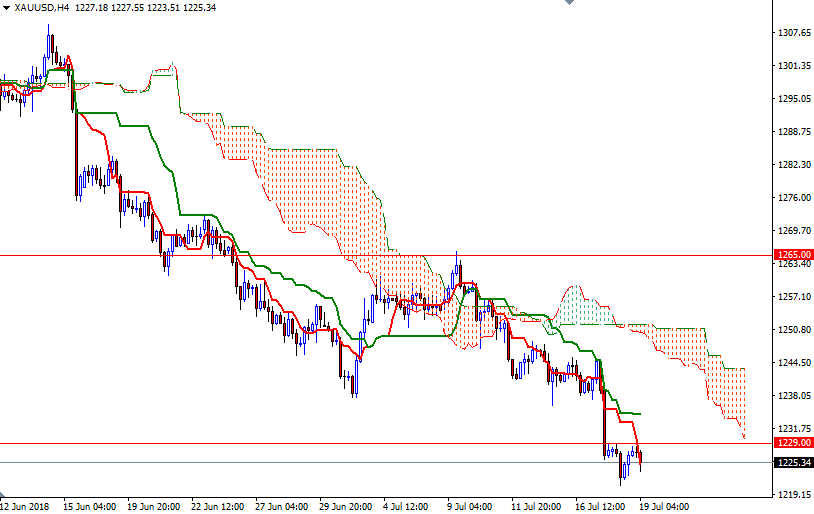 Gold ended the day almost unchanged as the market took a breather after prices dropped to a one-year low. Comments from Federal Reserve Chairman Jerome Powell lent support to U.S. stock indexes. An appreciating U.S. dollar and little risk aversion in the marketplace are working against the yellow metal. XAU/USD tested the anticipated support at around $1221 before revisiting the resistance in the $1230-$1229 zone.