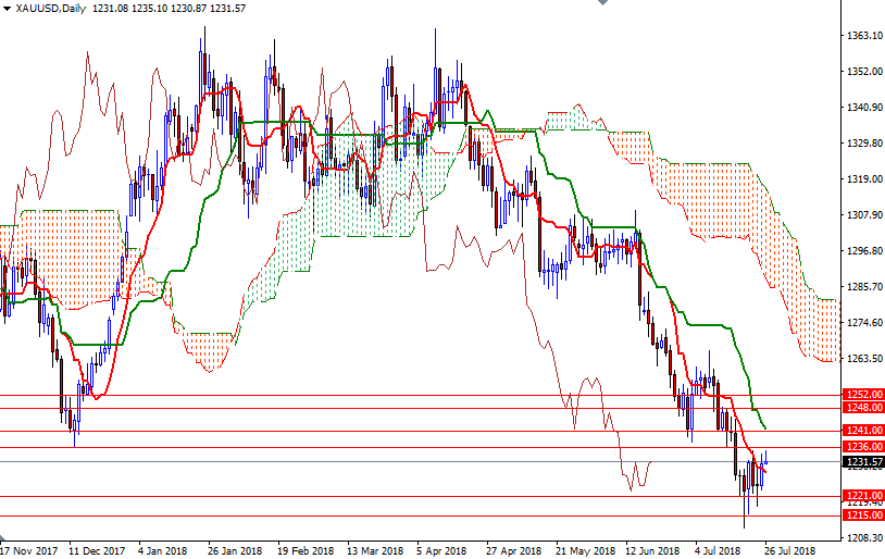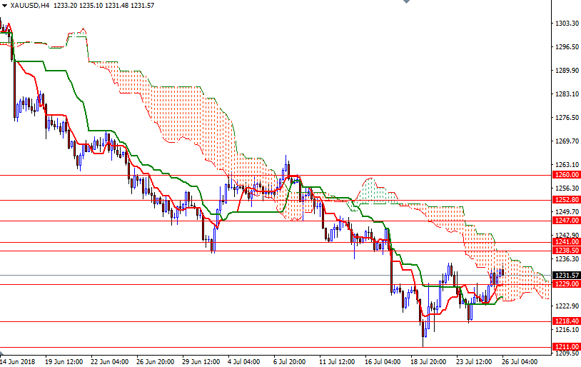 On the other hand, if prices dive below 1228.50, then we may return to 1225-1223.50, the bottom of the 4-hourly cloud. The bears will have to drag prices below 1221 to gain momentum for 1218.40.