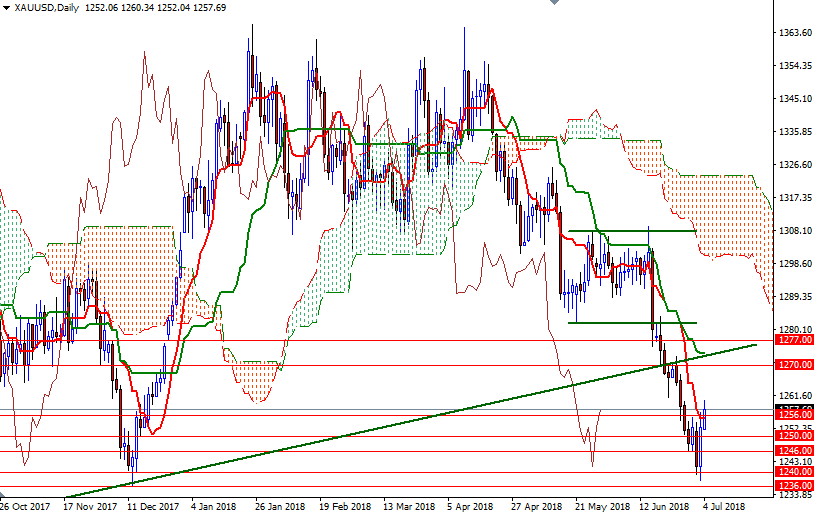 Gold prices ended Tuesday’s session up $10.92 an ounce, bouncing off their lowest level since mid-December, as the U.S. dollar weakened. Gold extended its gains after the market penetrated the resistance at $1246. Today’s trading volume is expected to be thin as U.S. financial markets will be closed for the Independence Day holiday. Traders are awaiting the release of the Federal Open Market Committee’s June meeting minutes on Thursday and U.S. employment data on Friday for validation of policy-makers’ forecasts for two more rate hikes this year.