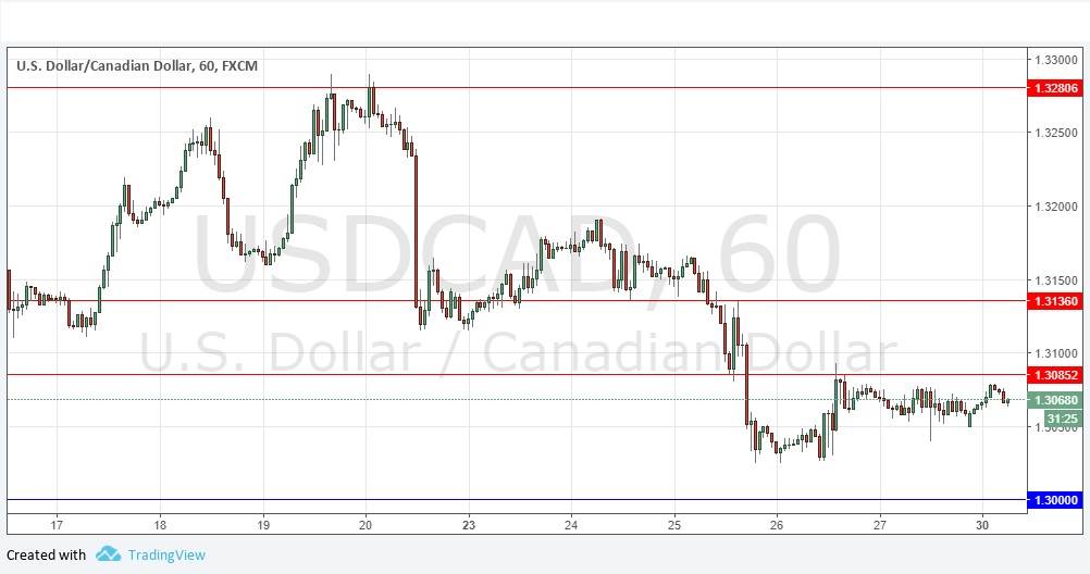 I wrote last Thursday that I had a weakly bearish bias today above 1.3000. I was wrong, as the price actually rose a little over the course of that day but was unable to get above 1.3085 before it turned around and fell again. The price is now consolidating below the resistance level of 1.3085. This should be the pivotal level of today: if it holds for a few hours, the price will probably move down towards 1.3000 again, while a sustained break above 1.3085 would be a bullish sign.