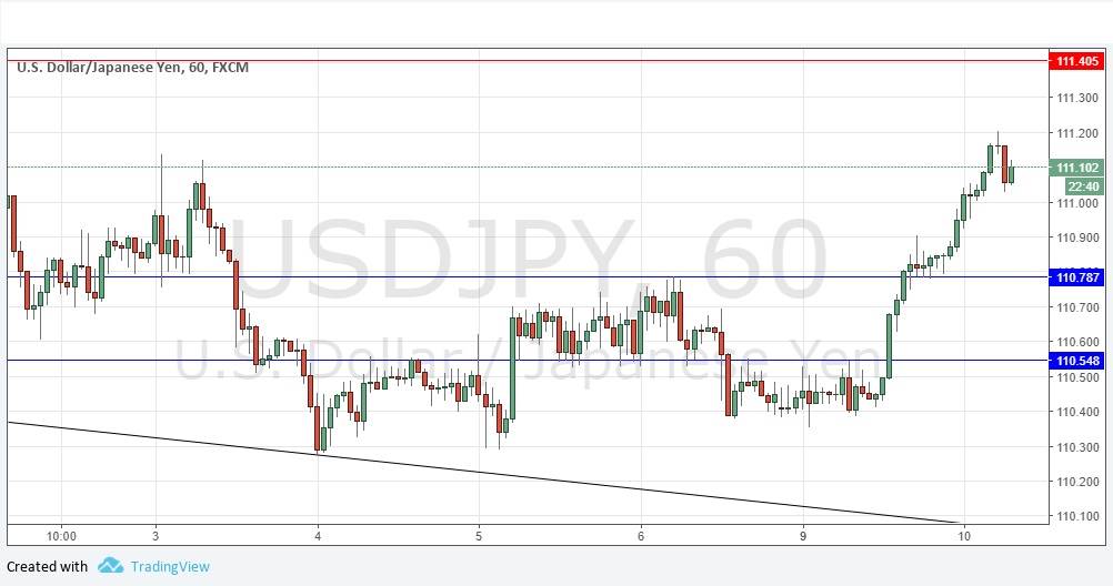 I wrote yesterday that the price now looked heavy, and there was nothing to hold it up, so I had a bearish bias below 110.55. I was completely wrong, as the price quickly turned very bullish and the price managed to slice cleanly through resistance, print new support, and drive upwards to new highs above 111.00. The bullishness was strong and consistent, but the price has now cooled off and pulled back, which is typical for this pair during the early part of the London session. I have a bullish bias today, and I expect the price to start rising again as New York comes online later. Be extremely careful about taking a short trade today – I would greatly prefer a bearish reversal at 111.75 than at 111.41.