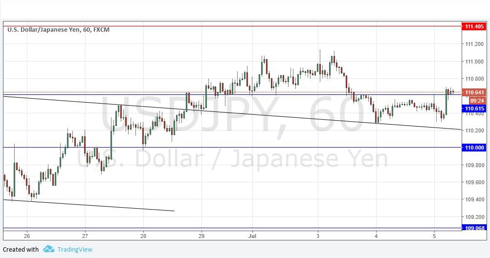 Go long following a bullish price action reversal on the H1 time frame immediately upon the next touch of 110.00.