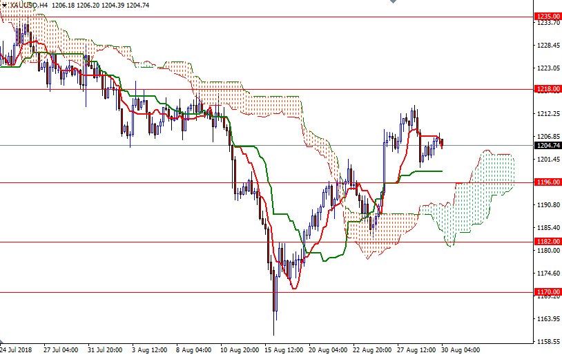 Gold prices ended Wednesday slightly higher after a quiet session. XAU/USD revisited the $1208-$1206 area after prices found support at around the $1200 level, but it was unable to break through. In economic news, the Commerce Department reported that gross domestic product increased at a 4.2% annual rate in the second quarter. World stock markets were mixed yesterday. U.S. stocks extended their rally on Wednesday, led by gains in technology shares.