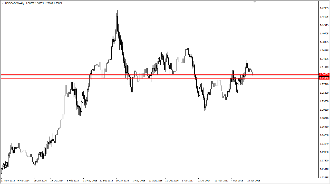 The US dollar has fallen against the Loonie during the week, as we test the support area between 1.29 and 1.30 or so. I think that the market will more than likely try to test the 1.29 level, but there will be a push back at that area. I think that the oil markets are somewhat rangebound as well, so it would make sense for this market to be also.