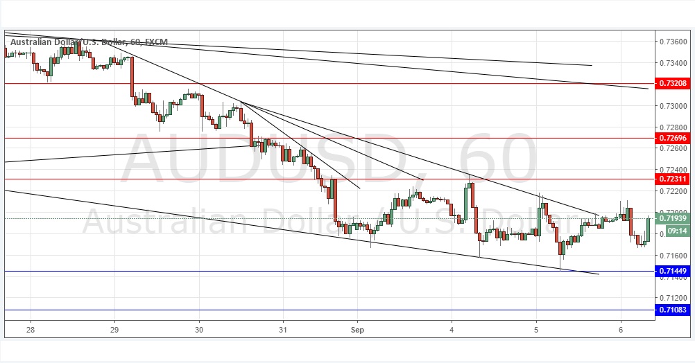 Go long following some bullish price action on the H1 time frame immediately upon the next touch of 0.7145 or 0.7108.