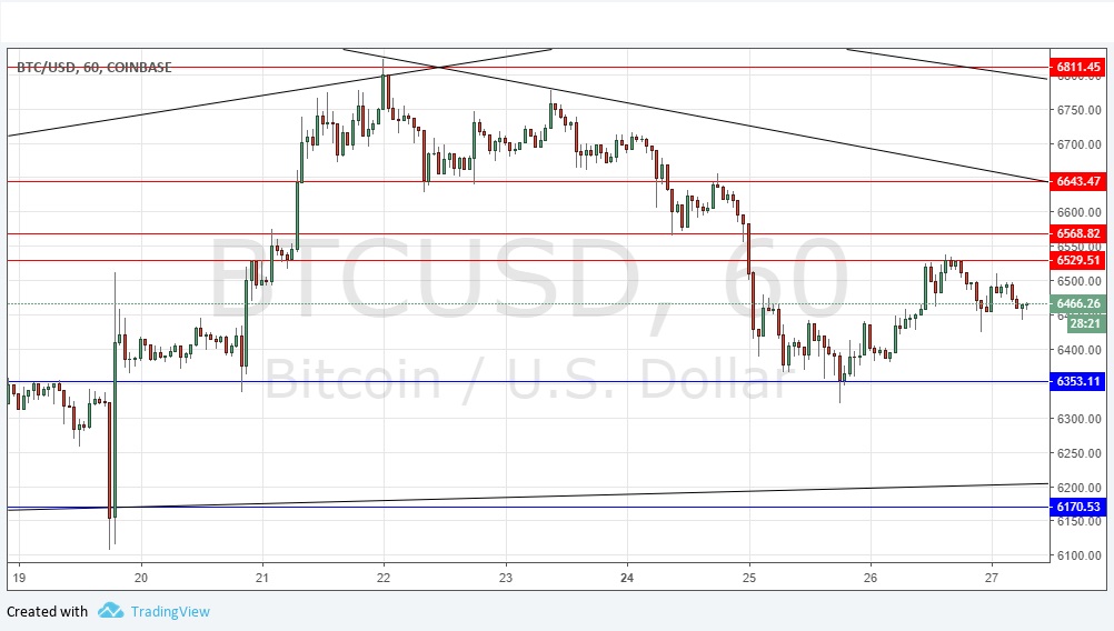 I wrote yesterday that the short-term direction looked weakly bullish but over the medium-term, it is impossible to make a good call here. I think the most exciting levels are far away: the support at $6,171 and the resistance at $6,643.