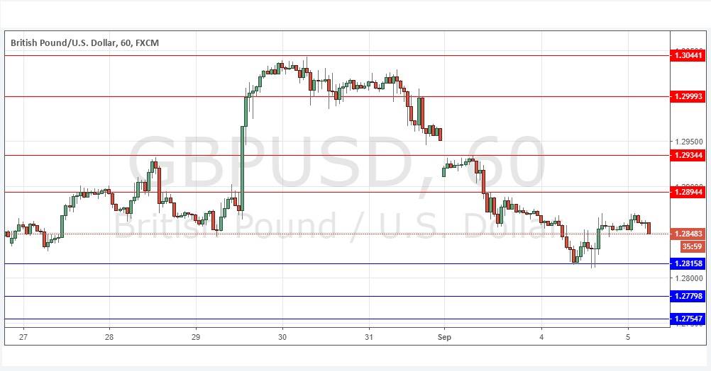 Short entry following a bearish price action reversal on the H1 time frame immediately upon the next touch of 1.2894 or 1.2934.