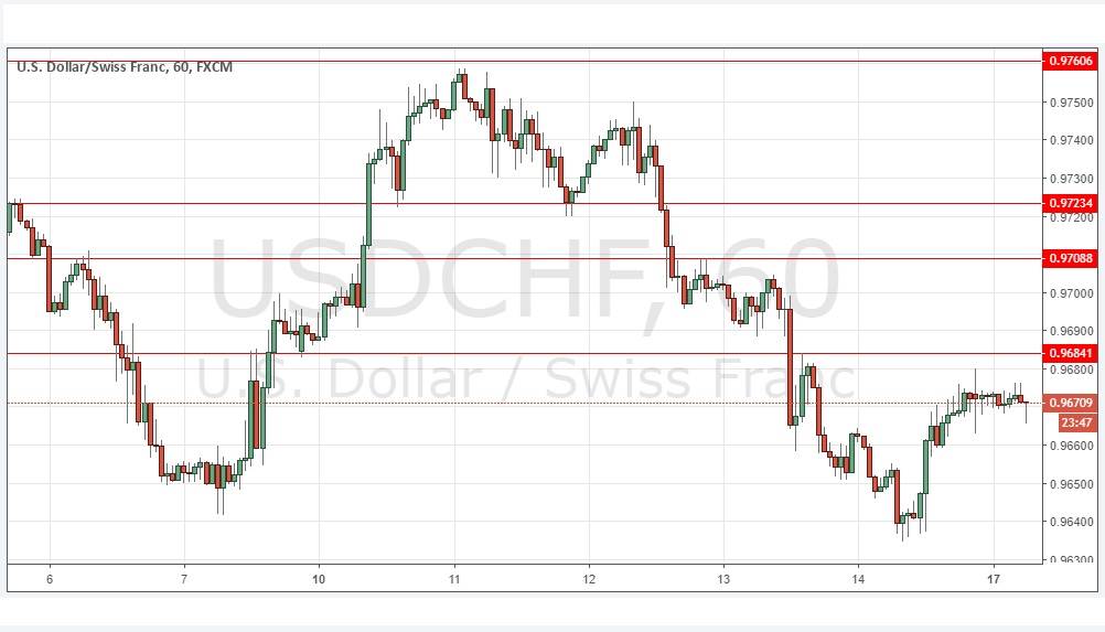 Short entry following a bearish price action reversal upon the next touch of 0.9684 or 0.9709.