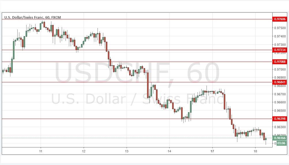 It is usually difficult to trade this currency pair, as it is highly susceptible to mean-reverting and unpredictable short-term volatility, due to the ease with which the CHF can be manipulated by the Swiss National Bank. For this reason, I would tend to avoid trading this pair unless something very interesting which really jumps out is going on, and the only example I could see of that setting up today would be a strongly bearish reaction following a pull-back to the obvious inflection point at 0.9640.
