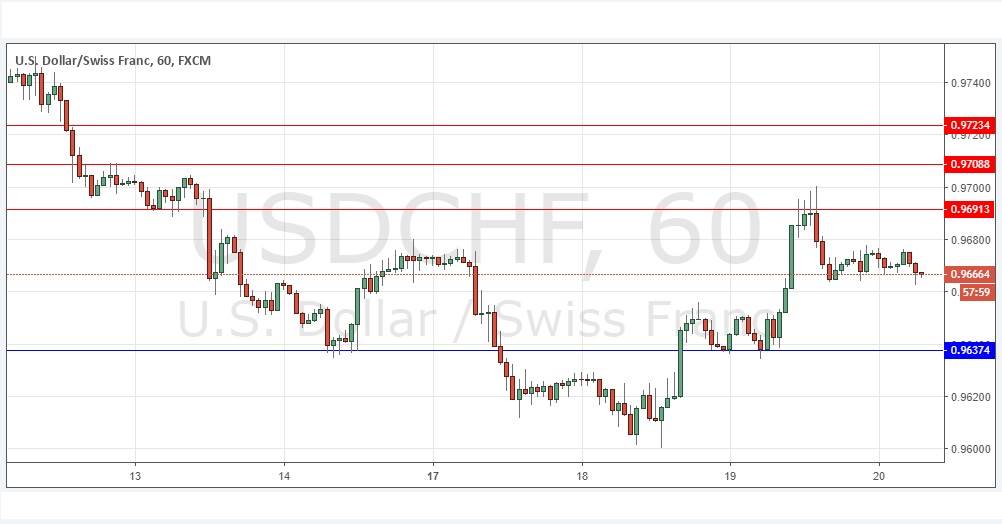 Short entry following a bearish price action reversal upon the next touch of 0.9691, 0.9709, or 0.9723.