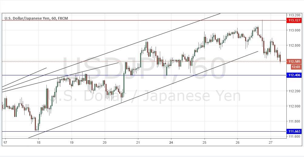 Yesterday’s signals produced a profitable short trade from the large bearish pin candlestick which rejected the resistance level at 113.13 to the pip. The trade would still be open and is worth keeping open for the time being.