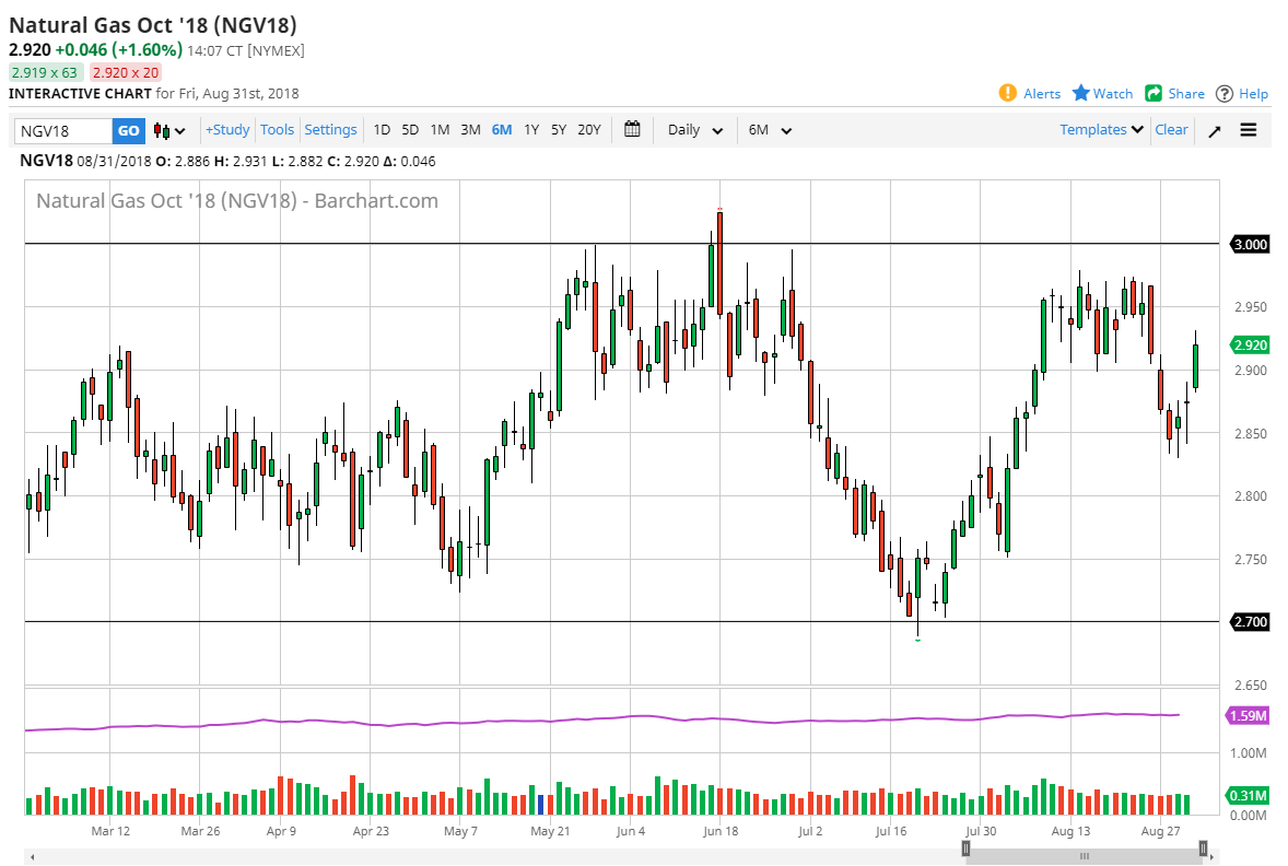 Natural gas markets broke higher during the trading session, reaching into the previous consolidation area. I believe that it will not have the strength to break through it though, and I also believe that eventually selling will be possible. I would do so cautiously though, and probably over several different trades, finally combining to make a full size position. Natural gas markets have been range bound for ages, and at this point I don’t think that’s going to change. The $3.00 level has been reliable resistance are far too long. I think that we will see selling soon, so keep an eye on exhaustion. Remember that the Americans away for Labor Day on Monday, and therefore the trading will be thin to say the least.