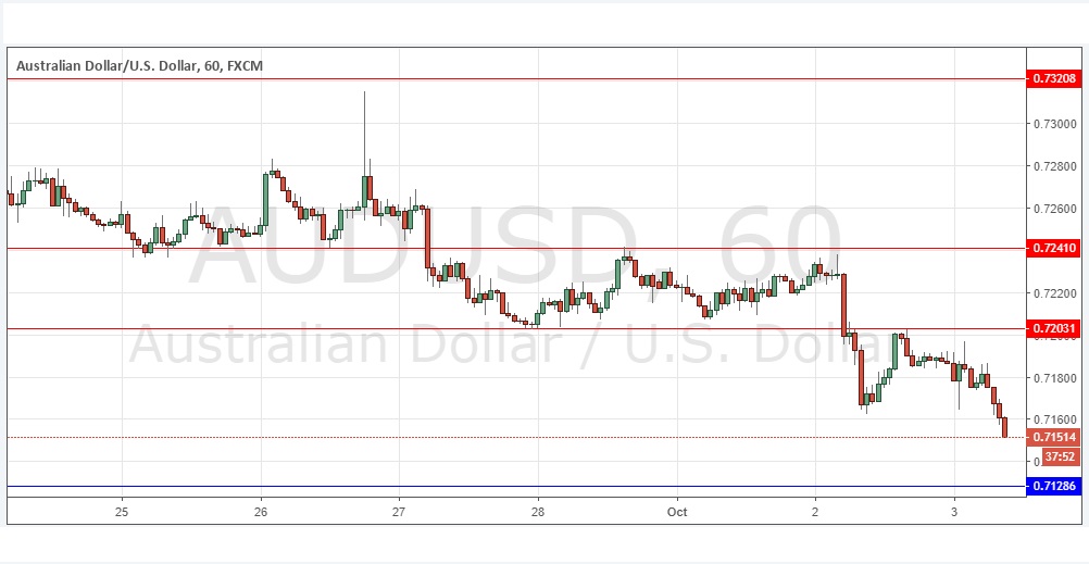 Go short following some bearish price action on the H1 time frame immediately upon the next touch of 0.7203.