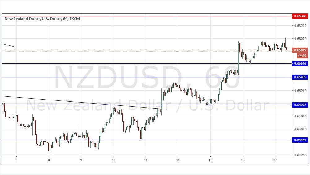 I wrote yesterday that the price looked a little likely to rise, as it was already bouncing off new higher support, with another new support level close by underneath that one. The NZD was also more bullish than its sister currency the AUD, which was another factor making me at least weakly bullish here yesterday. The price has indeed moved up a little over the past day, so it wasn’t a bad call, but the rise has been disappointing and small, with the short-term price action looking a little bearish too. For these reasons, I am less optimistic today, as it seems the U.S. Dollar is coming back a little generally. A retracement back to the nearby support at 0.6562 seems to be on the cards. I would be bullish if there is a firm bullish bounce there later.
