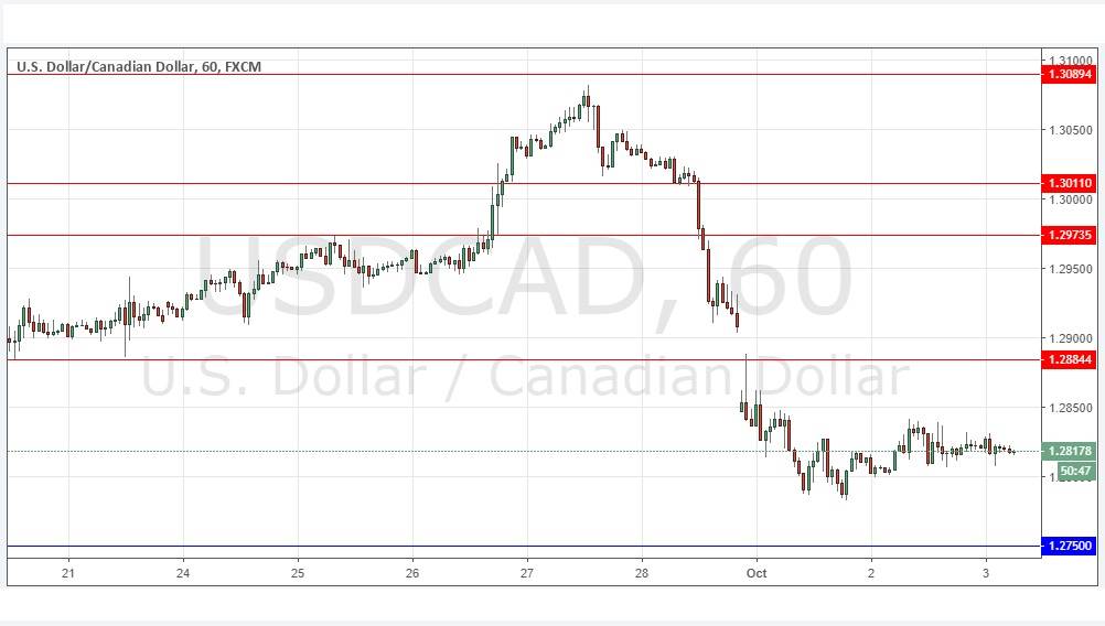 Short entry after the next strongly bearish price action rejection following the next touch of 1.2884.