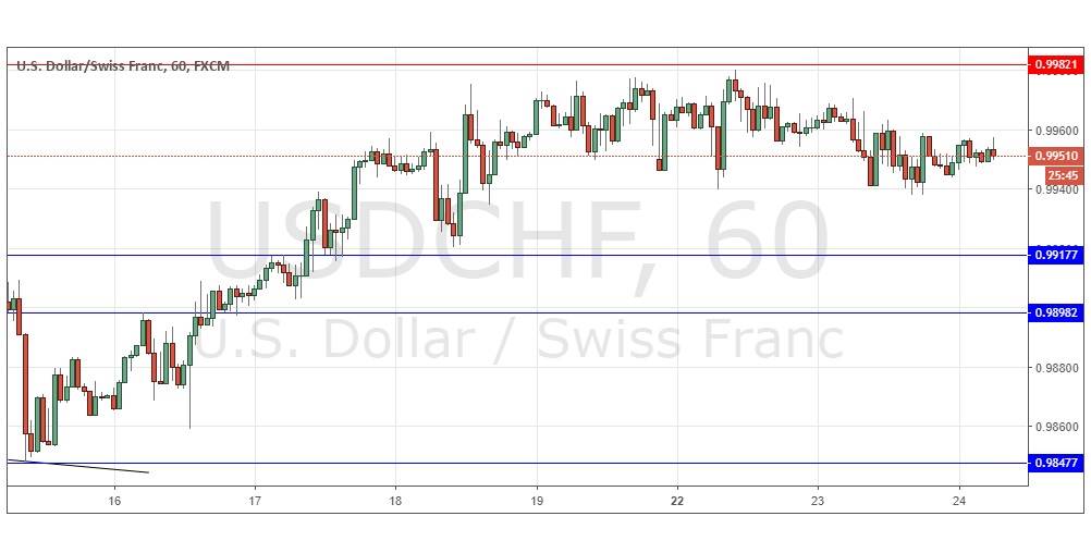 - Short entry following a bearish price action reversal upon the next touch of 0.9982 or 1.0010.
