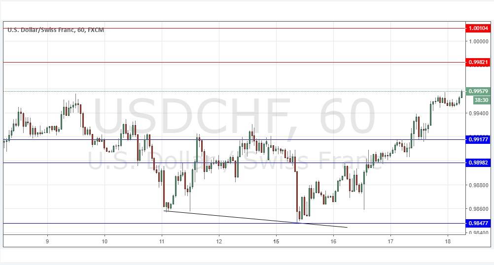 Go short following a bearish price action reversal upon the next touch of 0.9982 or 1.0010.
