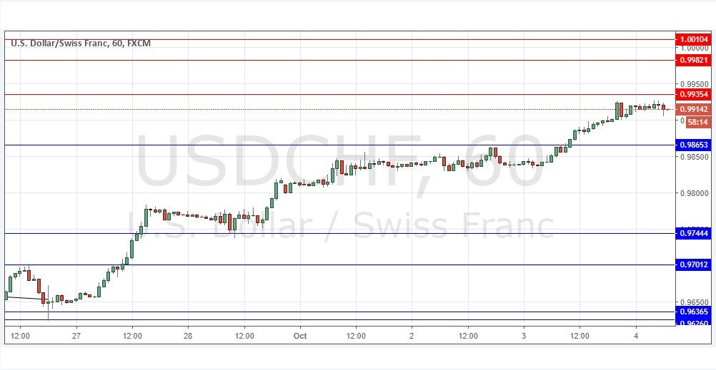 I wrote yesterday that the longer the price failed to break above 0.9865, the more likely there would be a retracement next down to at least the 0.9800 area. This was an OK call as the level broke quickly and the price continued to rise. There is still some bullish momentum as the U.S. Dollar remains strong, but the closer the price approaches to the parity level at 1.000 the harder it will be for it to rise further, probably. The level at 0.9935 has historically been quite strong so it should be interesting to watch. I have no directional bias on this currency pair today.