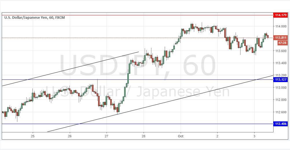 Short entry following a bearish price action reversal on the 1H1 time frame H1H1H1 time frame immediately upon the next touch of 114.18.