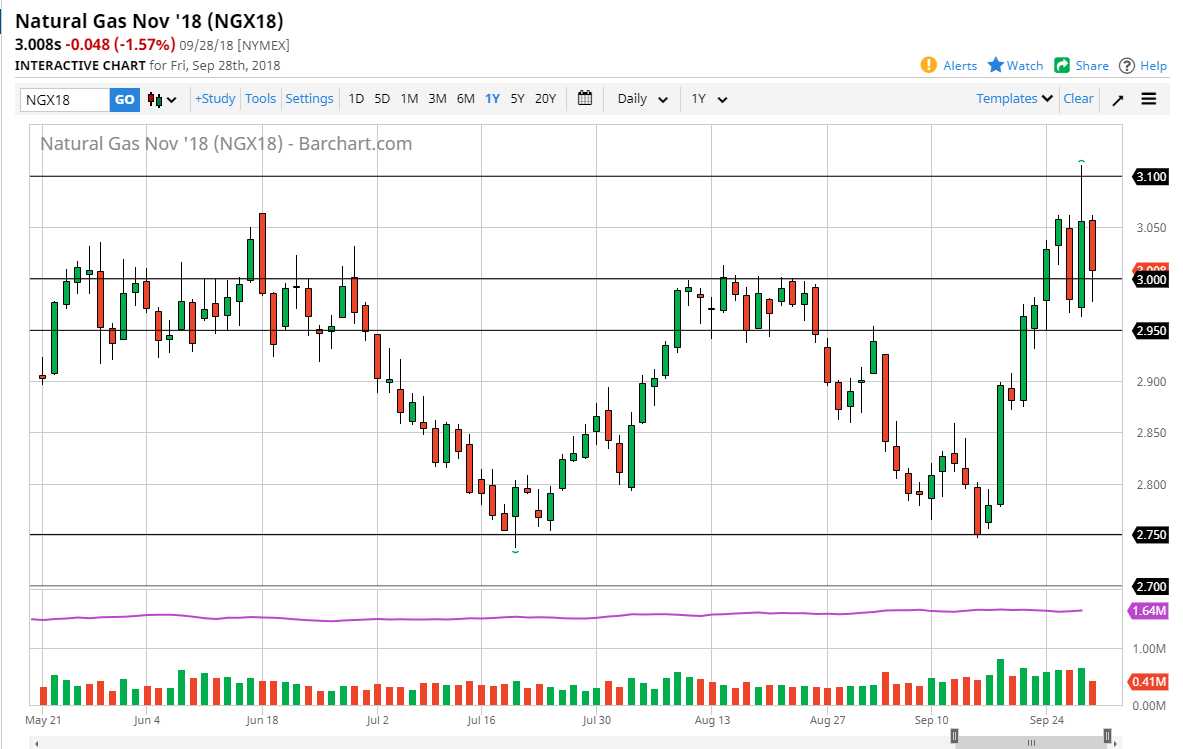 Natural gas markets broke down during the trading session on Friday, slicing through the $3.00 level. What I find interesting is that the weekly candle stick is a shooting star, and that is a very negative sign. However, I do not short this market until we get below the $2.95 handle, as it would to show that the market is going to go back and within the consolidation area. That could lead all the way down to the $2.75 level quite rapidly. Otherwise, we may see this market going back and forth in this general vicinity, supported at the $2.95 level, and of course resistance at the $3.10 level. It’s likely that the next couple of sessions will be very choppy, but if we do get a sudden mount down below the $2.95 level I will not hesitate to start shorting.
