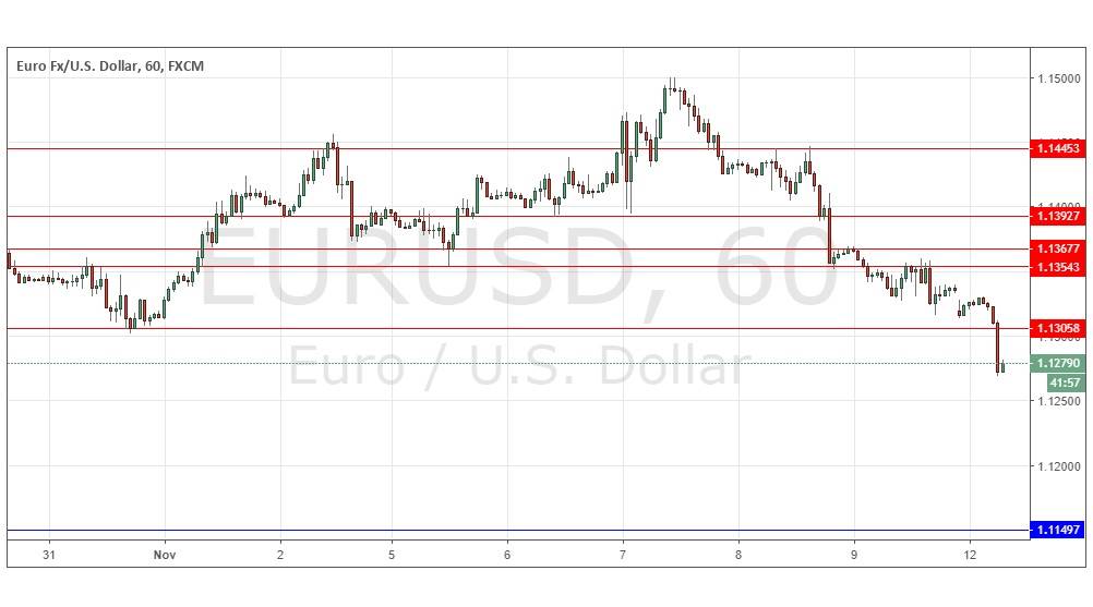 - Short entry following a bearish price action reversal on the H1 time frame immediately upon the next touch of 1.1306 or 1.1354.