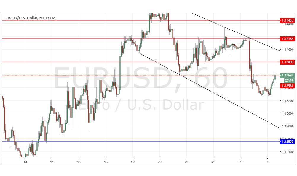 I wrote last Thursday that the price was likely to consolidate in thin trading and it did. It was generally unable to rise above the resistance level at 1.1417 and has fallen from there to produce a more bearish outlook. The long and medium-term trends are bearish, with the medium-term trend evidenced by the bearish price channel shown in the chart below. I would be happy to take a bearish bias today if we see a clear failure to rise higher at any nearby key resistance levels.