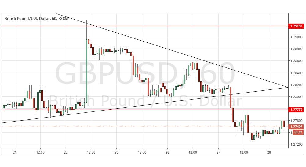 - Short entry following a bearish price action reversal on the H1 time frame immediately upon the next touch of 1.2778 or the trend line currently sitting at about 1.2818.
