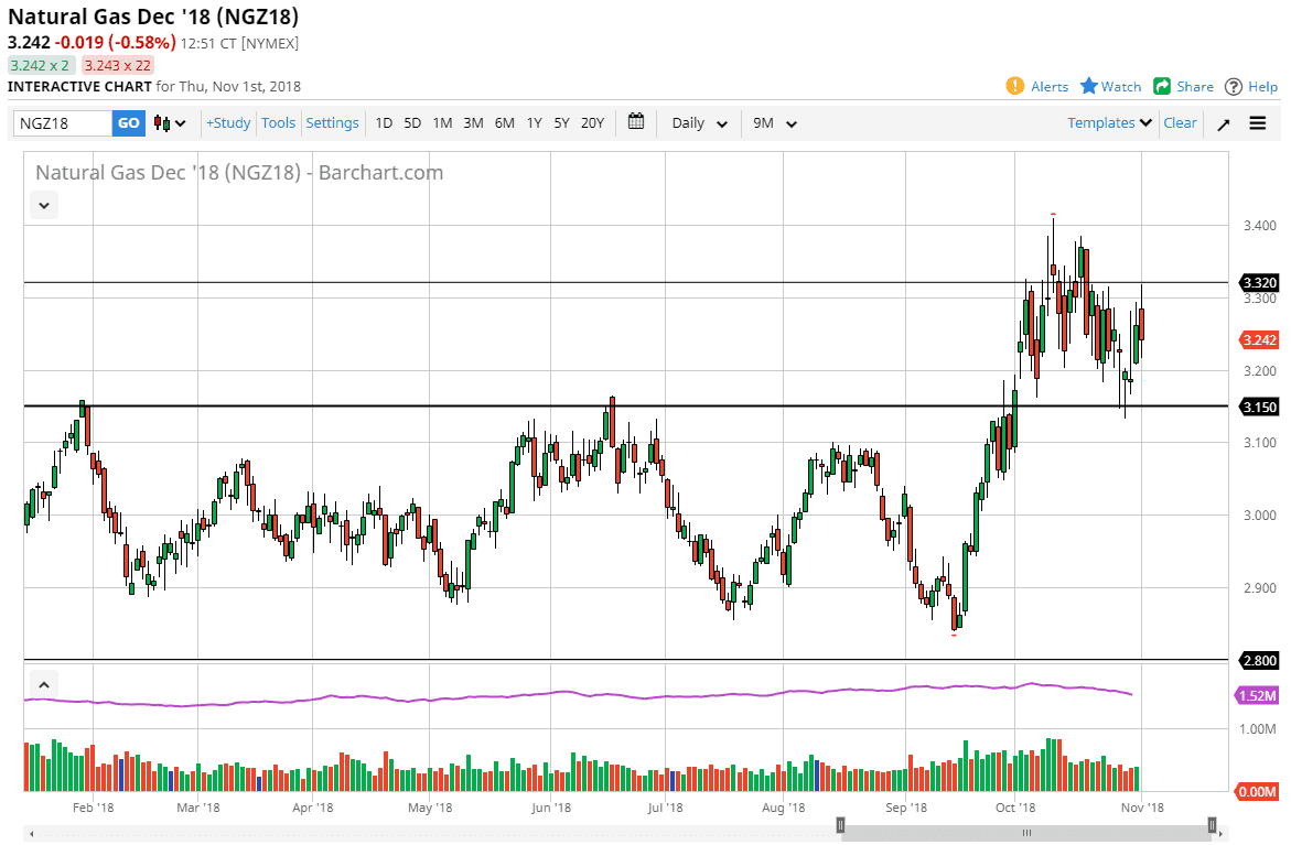 Natural gas markets went back and forth during the trading session on Thursday, as we continue to see a lot of volatility in this market. The $3.32 level above is resistance, as we have seen selling in that area recently. The $3.20 level underneath is supportive as well, and I think that extends down to the $3.15 level. A breakdown below that level would be pretty negative for this market, but I think overall we are looking at is a continuation of the choppiness that we have seen for a while now. Because of this, I look for short-term opportunities in both directions, but I do recognize that there is certainly a lot of bearish pressure above, so I’m starting to tilt my expectations down a bit as the market may have gotten a bit overextended.