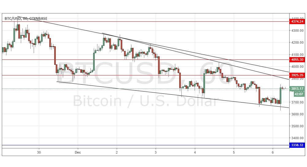 I wrote yesterday that the price was now in a bearish wedge and continuing to make new lows. I thought it made sense to remain broadly bearish as long as the price traded below $4,000. I thought that a sustained break below $3,700 would be a very bearish sign.