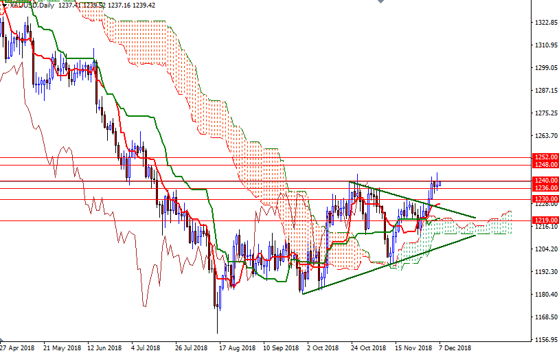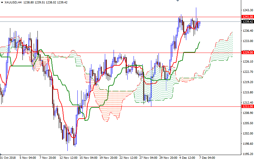 From a chart perspective, the bulls have the near-term technical advantage, with the market trading above the daily and the 4-hourly Ichimoku clouds. The Tenkan-sen (nine-period moving average, red line) and the Kijun-sen (twenty six-period moving average, green line) are positively aligned on both charts. However, the market continues to stay range bound roughly between 1241 and 1234. The bulls need to hold prices above 1241 to tackle the next barrier at around 1245.50. If XAU/USD breaks through 1245.50, it has the potential to rise to 1252/48.