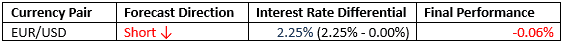 Last month we forecasted that the best trade would be short EUR/USD. The final performance was as follows: