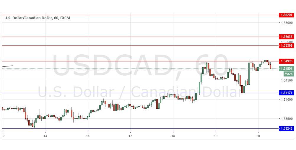 Yesterday’s signals produced a nicely profitable long trade from the bullish engulfing candlestick which rejected the support level at 1.3417, which topped out at the next resistance level at 1.3500 around the time of the New York close. It is probably worth taking most of any floating profit off the table now.