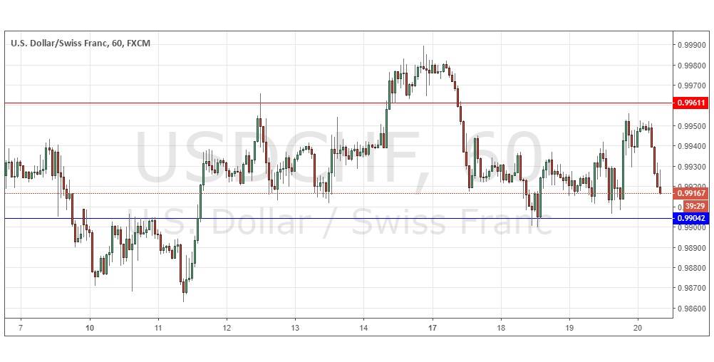 I wrote yesterday that I would avoid trading this currency pair today, and I had no bias beyond thinking that a quick drop below 0.9900 in the early part of the London session could see the price reach the next support level quite quickly. This was a good call, as the price did little over the past day, as I had expected, even with the FOMC release that caused a lot of movement in other markets, which just goes to show you how dull and range-bound this currency pair is.