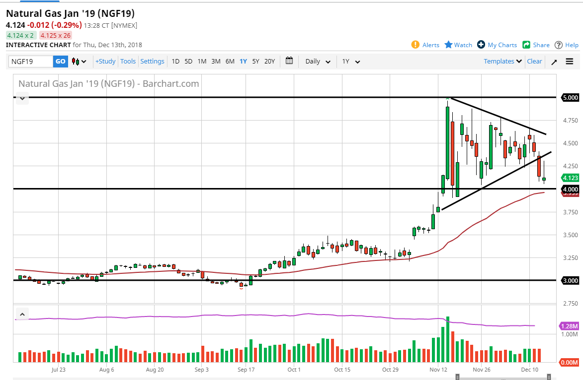 The WTI Crude Oil market initially dipped during the trading session on Thursday but then turned around to show signs of life again. We are still in the same consolidation area that we have been in, bouncing around in a triangle of sorts. The $50 level underneath continues offer massive support, so if we can continue to find buyers underneath, it’s likely that we could go towards the $55 level, just as if we break down below the $50 level, we could go down to the $45 level. Ultimately, I think we continue to see a lot of volatility, and ultimately I think that it’s only a matter of time before we make a decision, but right now it looks as if we are still trying to figure out where we are going next. I would not be surprised at all to see this market to simply go sideways though, because we are at the end of the year and liquidity will start to trade.