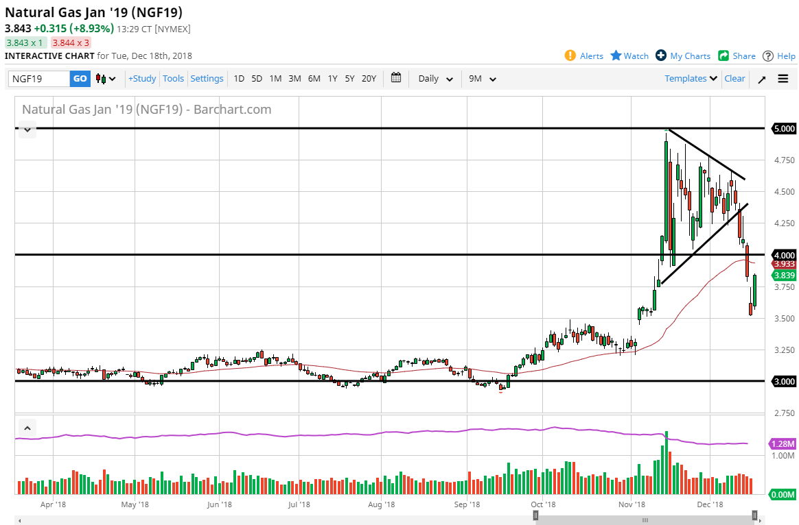 Natural gas markets rallied rather significantly during trading on Tuesday, filling the gap from the Monday open, and at this point I think it’s only a matter of time before we see some type of exhaustion come back into the market that we could start selling again. I think that traders will continue to look at this as an opportunity to fade rallies, as the 50 day EMA is turning lower, and of course the $4.00 level should offer resistance from a psychological standpoint. In fact, the closer we get to the $4.00 level, the more interested I am in shorting this market. I believe it is only a matter time before the sellers come back, and that we go low enough to fill the gap down near $3.26. I have no interest in buying this market.