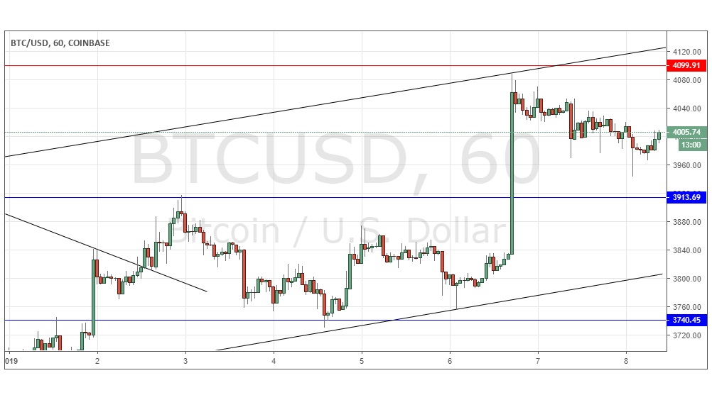 I wrote yesterday that as the price had printed new support levels and was also well established within a bullish price channel., it looked likely that the pivotal level would be at $3,914. This was OK as the price remained within trend lines and the horizontal levels, making a relatively gentle and slow bearish retracement, so we do not have a strong reason to stop being bullish. The signs are all weakly bullish and I would take a bullish bias later if there is a bullish bounce at $3,914. A sustained break above $4,100 would be a more bullish sign yet.