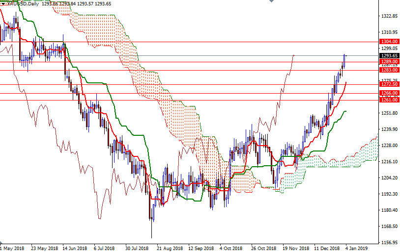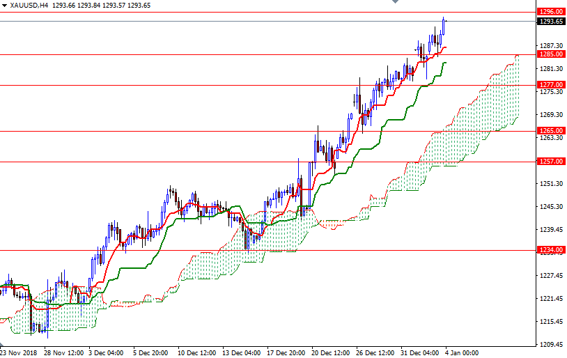XAU/USD is trading above the Ichimoku clouds on the daily and the 4-hourly charts, suggesting that the bulls have the overall near-term technical advantage. Closing above the 1293.50 level indicates that the market is headed towards the 1296 level. If the market can climb and stay above 1296, then the next target will be 1300 - this barrier may remain intact until the release of the U.S. jobs report. A break through there could trigger a push up to 1307/4.