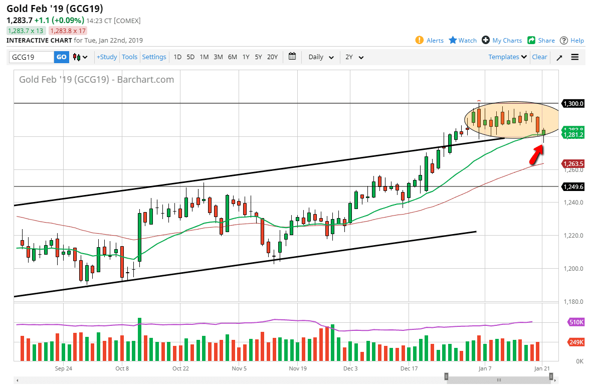 It makes sense that we go back and forth because the market doesn’t really know what to do with the information it has at the moment. We are worried about trade wars, we are worried about the Federal Reserve and whether or whether or not it will continue to tighten monetary policy. It is the balance sheet information that the market is now focused on as it appears that the Federal Reserve is very likely to be a bit more neutral at the very least when it comes to interest rate hikes. That should in theory be negative for the US dollar and by extension should lift gold. If and when we finally break above the $1300 level, then the market could go all the way to the $1400 level, $25 increments at a time. If we break below the candle stick for the session on Tuesday, then I think the 50 day EMA is your next support level.