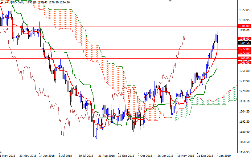 Gold prices ended Friday’s session down $9.09 an ounce as the dollar rose in the wake of U.S. non-farm payrolls data for December, which suggested the economy maintained strong momentum at the end of 2018. The Labor Department reported that the economy added 312000 jobs in December, beating consensus estimates of 179000, and average hourly wages jumped 0.4%. Gold drifted lower after prices fell below $1289, but found support in the $1279-$1277 area and trimmed losses following Fed Chairman Jerome Powell’s remarks. “Particularly with the muted inflation readings that we’ve seen coming in, we will be patient as we watch to see how the economy evolves...We are always prepared to shift the stance of policy and to shift it significantly,” Powell said.