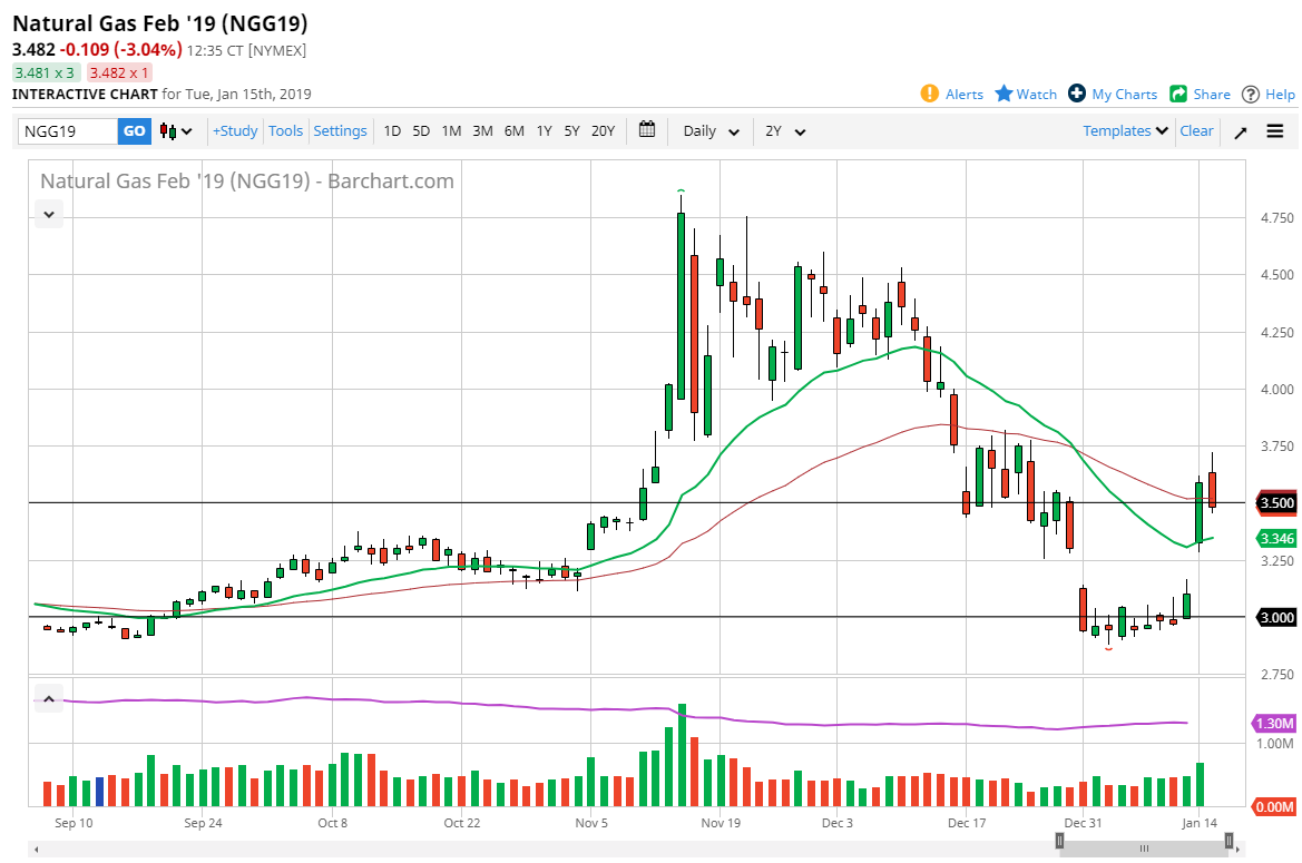 Natural gas markets rallied a bit during the trading session initially on Tuesday but found enough resistance at the $3.75 level to turn things around and break towards the $3.50 level. If we can break down below that level, then it’s very likely that we could go down to fill the gap underneath. The oversupply of natural gas continues to be a major issue when it comes to this market, and the recent sharp rally of course has been due to the short-term cold snap that we have seen. At this point, I think that the market is more likely to fill that gap and reach towards the $3.00 level. I think it will take a bit of momentum building to get below the $3.00 level so look at this as an opportunity to start shorting from higher levels.
