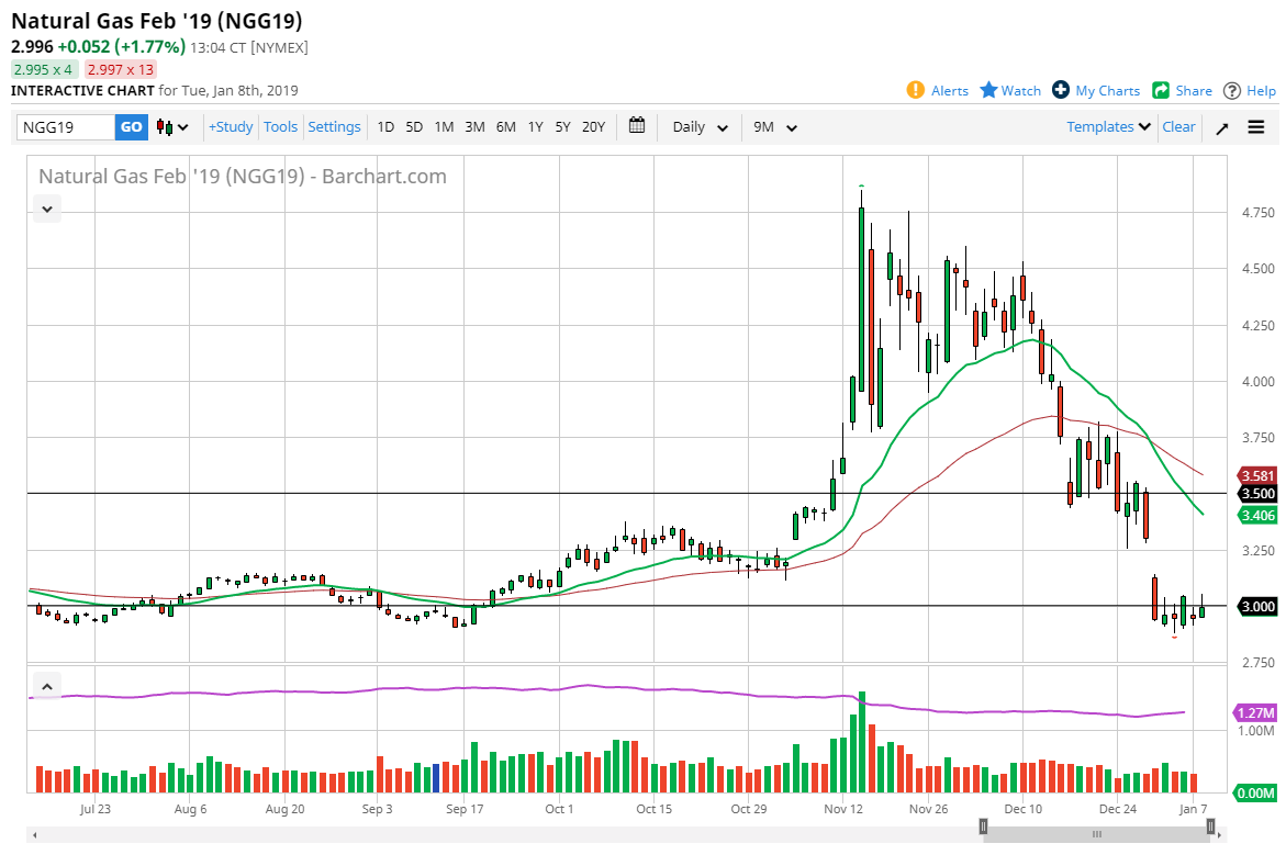 Natural gas markets tried to rally during the day on Tuesday but continue to find resistance above the $3.00 level. By finding that resistance, we turned around of form an exhaustive looking candle but I still think that we need to rally from here and fill the gap above before we can start shorting. True, we could continue to go lower and perhaps even as low as the $2.50 level but I think at this point in time the risk/reward ratio just isn’t there. On a rally towards the $3.30 level and on signs of exhaustion, I would be more than willing to short this market. I like the idea of fading rallies that show signs of exhaustion, and I do believe that the oversupply of natural gas will continue to be a major issue long term.