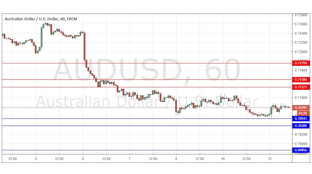 Go short following some bearish price action on the 1H1 time frame H1H1H1 time frame immediately upon the next touch of 0.7123, 0.7139, or 0.7175.