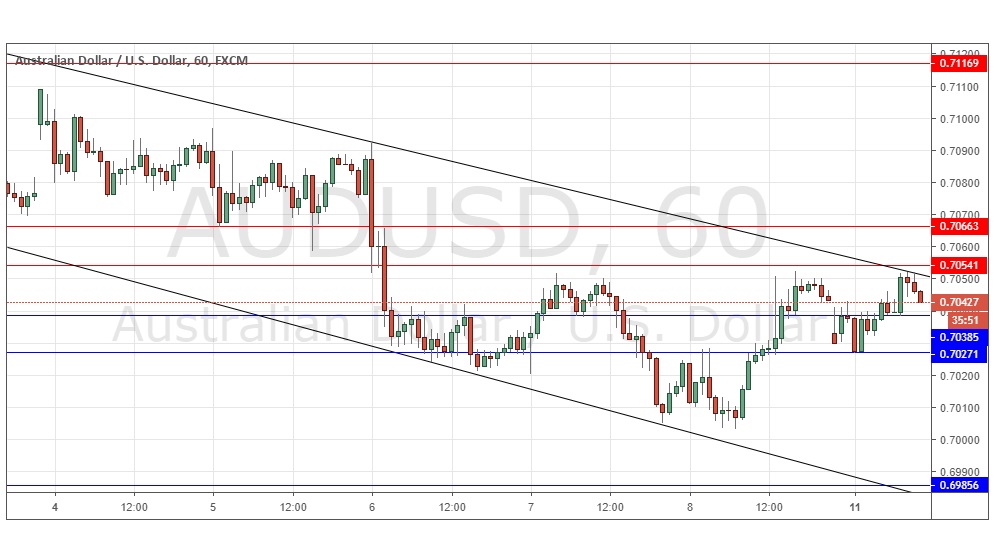 - Go short following some bearish price action on the H1 time frame immediately upon the next touch of 0.7054 or 0.7066.